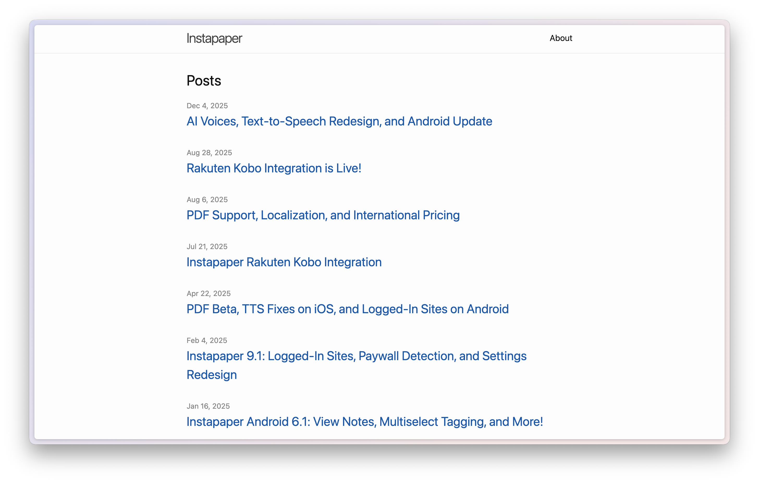 The quality of the blog now matches the importance of the announcements that Instapaper has been publishing for the past 18 years. Au revoir, Tumblr.